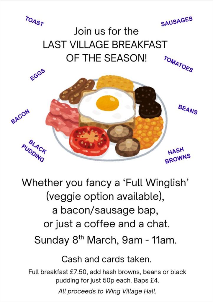 All proceeds go to Wing Village Hall, which means every bite helps keep the lights on and the kettle boiling.